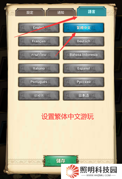 4、玩家們點擊上方最右側的選項,在界面中選擇中文既可。