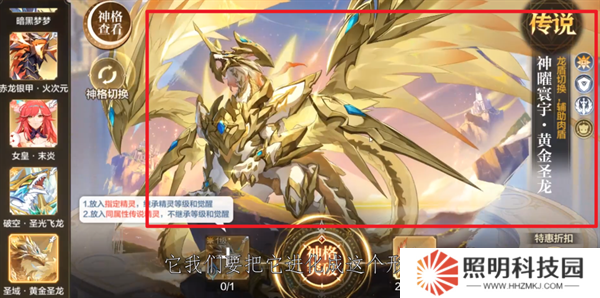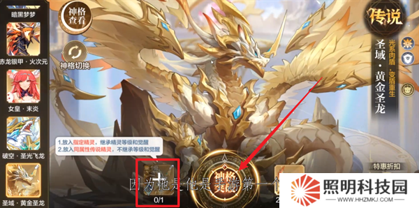 6、將自己的精靈放置到其中,消耗一定的材料,點擊中間的神格突破就能夠完成神曜進化。