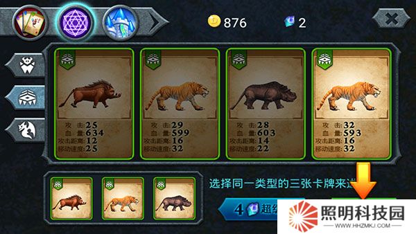 1.每個(gè)動(dòng)物卡牌都有自己的特點(diǎn)和技能,根據(jù)不同的關(guān)卡和敵人來(lái)選擇合適的動(dòng)物角色。