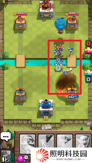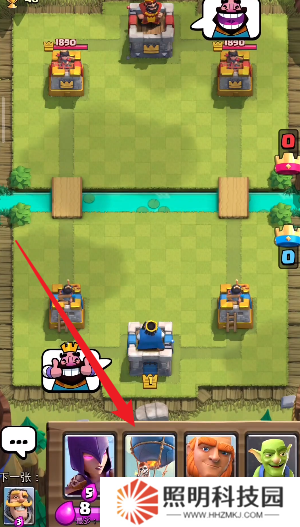1、進入對戰(zhàn)地圖之后,雙方玩家們會各自擁有一個堡壘以及炮塔,你需要在這種情況之下召喚自己的**來進行戰(zhàn)斗。