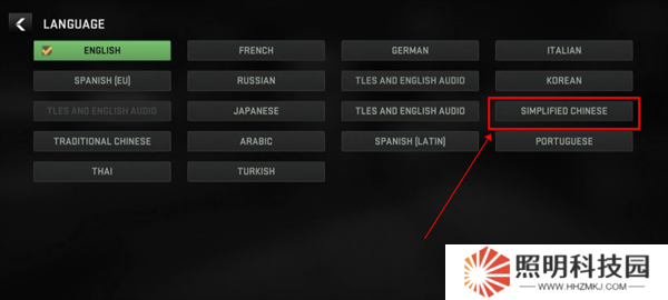 3.選擇“SIMPLIFIED CHINESE(簡體中文)”選項,點擊選擇簡體中文。