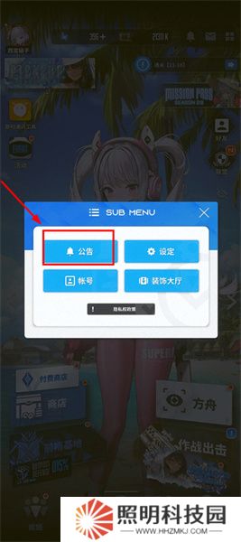 2、接著玩家們在彈出的界面中點擊公告選項。