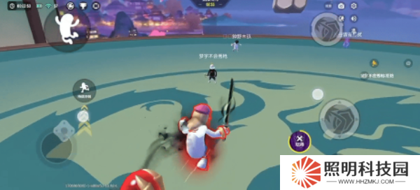 八人同臺競技的場內會有一個球讓我們來回拍打,當身上被紅光圍繞時,就意味著該我們拍打飛球了(擊飛球按下攻擊鍵即可),如果我們沒有把球成功的傳給他人拍打,那我們就會被飛球淘汰,反之則不會。