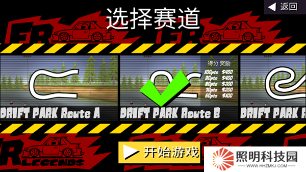 3、然后玩家們選擇想要游玩挑戰的賽道,點擊選后點擊開始游戲。