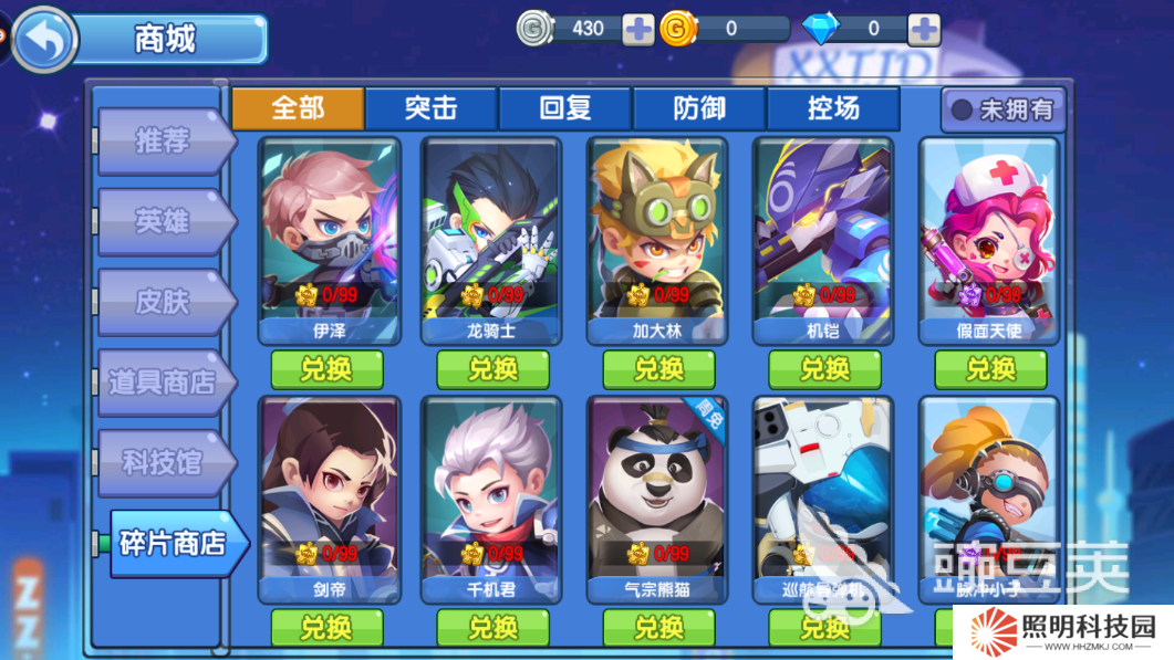 直接在大廳中就可以看到有商城選項,在商城中我們可以選擇不同的英雄與皮膚,英雄購買有很多的方式,有鉆石購買,有銀幣購買,活動獲取,金幣購買等等。