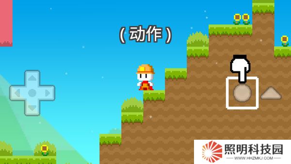 2、點擊右下角的三角按鈕,可以讓角色在場景當中進行跳躍。