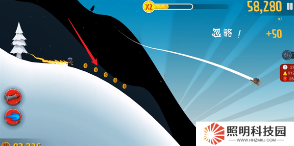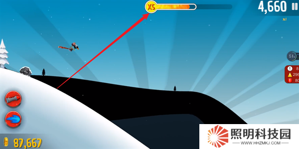 3、在滑雪的過(guò)程之中會(huì)遇到各種各樣的障礙,你需要操控自己的角色小心避開(kāi)。