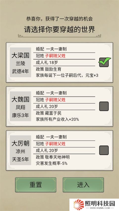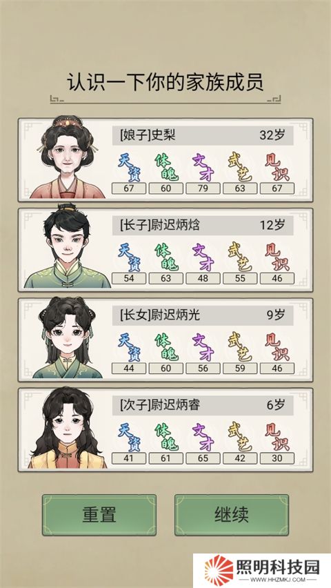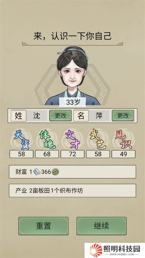 3、確認一下自己的天資、姓名、體魄、文才、武藝等屬性,如果對自己的屬性不滿意的話,可以點擊重置;