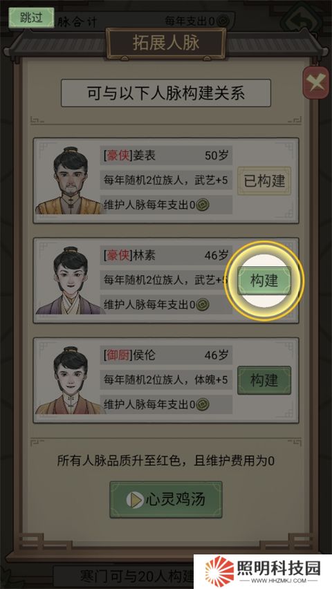 14、之后點擊人脈,即可給家族拓展一些人脈;