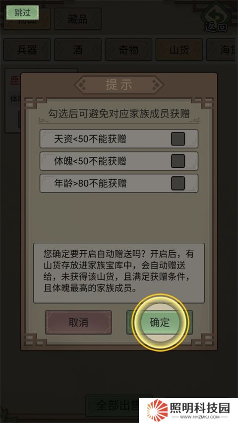 11、選擇自動贈送即可將自動贈送滿足獲贈條件且體魄最高的家族成員;