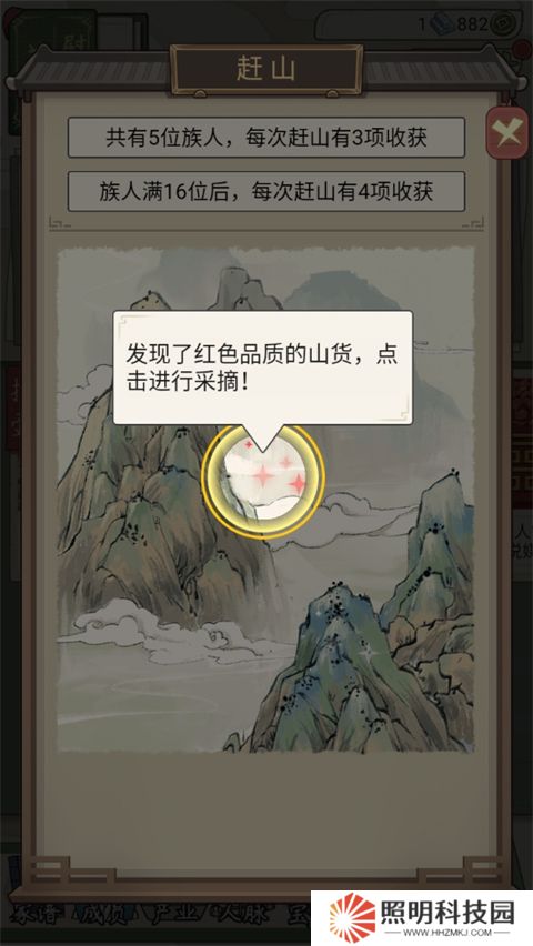 8、點擊趕山后發現紅色品質山貨,點擊進行采摘即可;