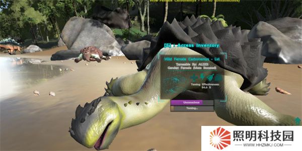 4、盡量將想要馴服的怪物帶到狹小的角落處馴服,這樣既不會(huì)被這條恐龍的同類攻擊也不會(huì)有其他的獵食者來阻礙馴服。
