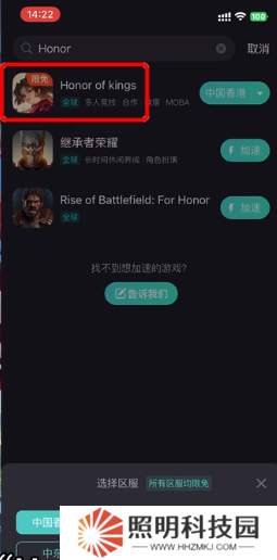 1、在本站下載安裝游戲,在準備好的加速器搜索游戲點擊選擇區服。