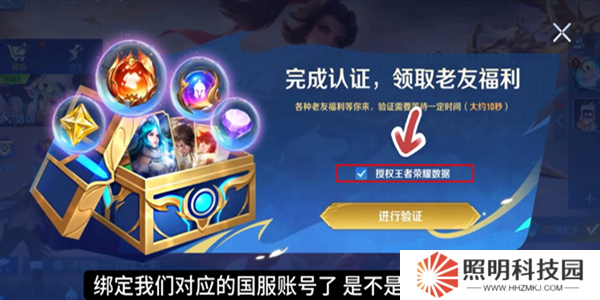 2、進入到游戲后,點擊勾選授權王者榮耀數據,然后進行驗證。