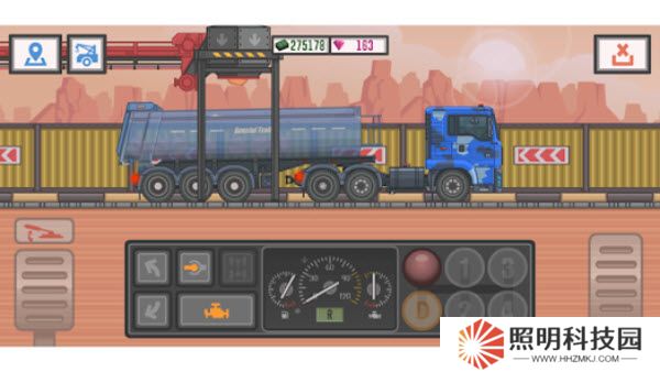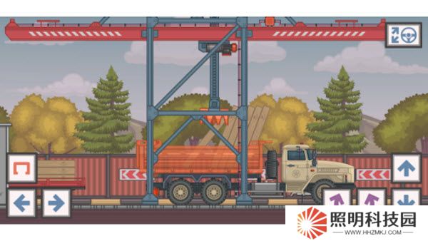 3、取到貨物后將叉車開到卡車中,然后再按下左下角的夾子按鈕就可以將貨物放在卡車上。