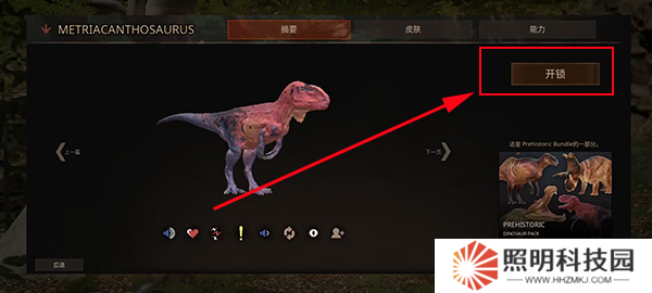 3、然后在恐龍界面的介紹面板中點(diǎn)擊右上角的開鎖即可。