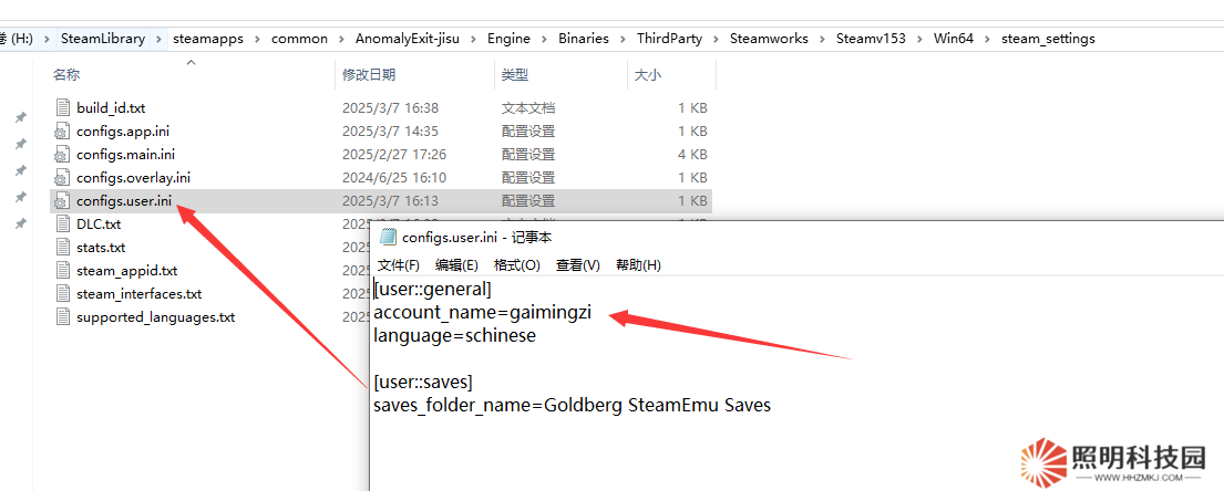 異常出口改名字教程:記事本方式打開EngineBinariesThirdPartySteamworksSteamv153Win64steam_settingsconfigs.user.ini,找到account_name=gaimignzi,把gaimignzi改成自己想要的名字。