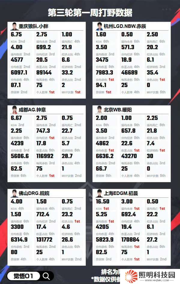 第三輪各位置數據:歸期十項第一,大帥八項數據第一,花卷九項數據第一