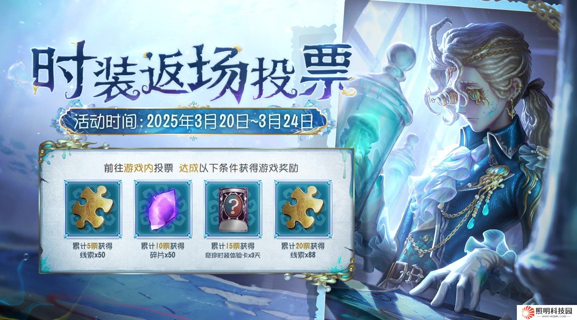 第五人格七周年返場皮膚投票入口在哪 第五人格七周年時(shí)裝返場活動(dòng)介紹 發(fā)布時(shí)間:2025-03-20 11:25:51 編輯:本站小編 來源:互聯(lián)網(wǎng)