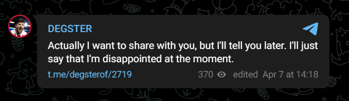 Abdul Gasanov | degster在賽后也寫道:“我想和你們分享點東西,但稍后我會再說的。只能說當前我很失望。”