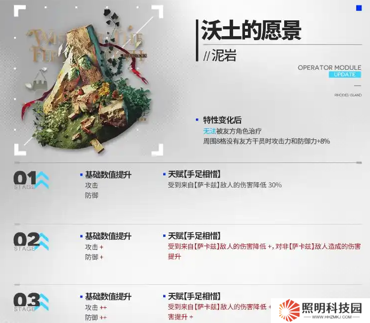 升級效果:受到來自薩卡茲敵人的傷害降低++,對非薩卡茲敵人造成的傷害提升+