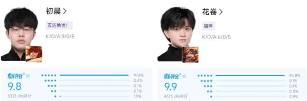 初晨這個當年以野核出道的“大魔王”、“晨導(dǎo)”,職業(yè)生涯的前兩個五殺卻都是用射手拿的,一個自由人時代的打野李元芳、一個野射搖擺時期的馬可。而在本周對陣到北京WB的第一局,初晨用裴擒虎打出了9-0-5的超神戰(zhàn)績,并時隔六年拿到自己職業(yè)生涯的第三個五殺。成為KPL第二位三次拿到五殺的選手的同時,也終于用野核實現(xiàn)了五殺。