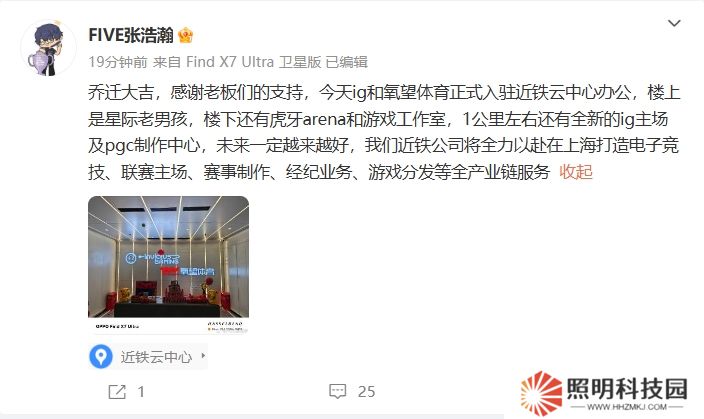 他在微博上寫到:?jiǎn)踢w大吉,感謝老板們的支持;ig和氧望體育正式入駐近鐵云中心辦公;1公里左右還有全新的ig主場(chǎng)及pgc制作中心,公司將全力以赴在上海打造電子競(jìng)技、聯(lián)賽主場(chǎng)、賽事制作、經(jīng)紀(jì)業(yè)務(wù)、游戲分發(fā)等全產(chǎn)業(yè)鏈服務(wù)。