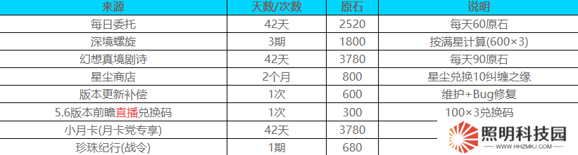 1、原石獲取方式較穩定,但部分獎勵(如深境螺旋)會因個人戰力不同有所浮動,打不滿的玩家自行扣除。