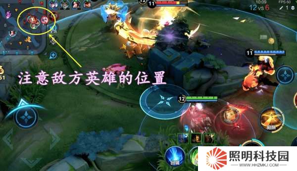 另外,分析戰局也很重要,上圖是后期在中路發生的一波團戰,己方的鏡、不知火舞、廉頗全是殘血,只有黃忠和敵方的典韋是滿血。