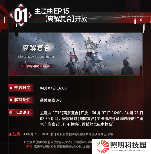主題曲EP15【離解復合】開放,在4.7-4.21期間,可以獲得特殊道具,然后兌換資源,其中包括奧達的新皮膚。
