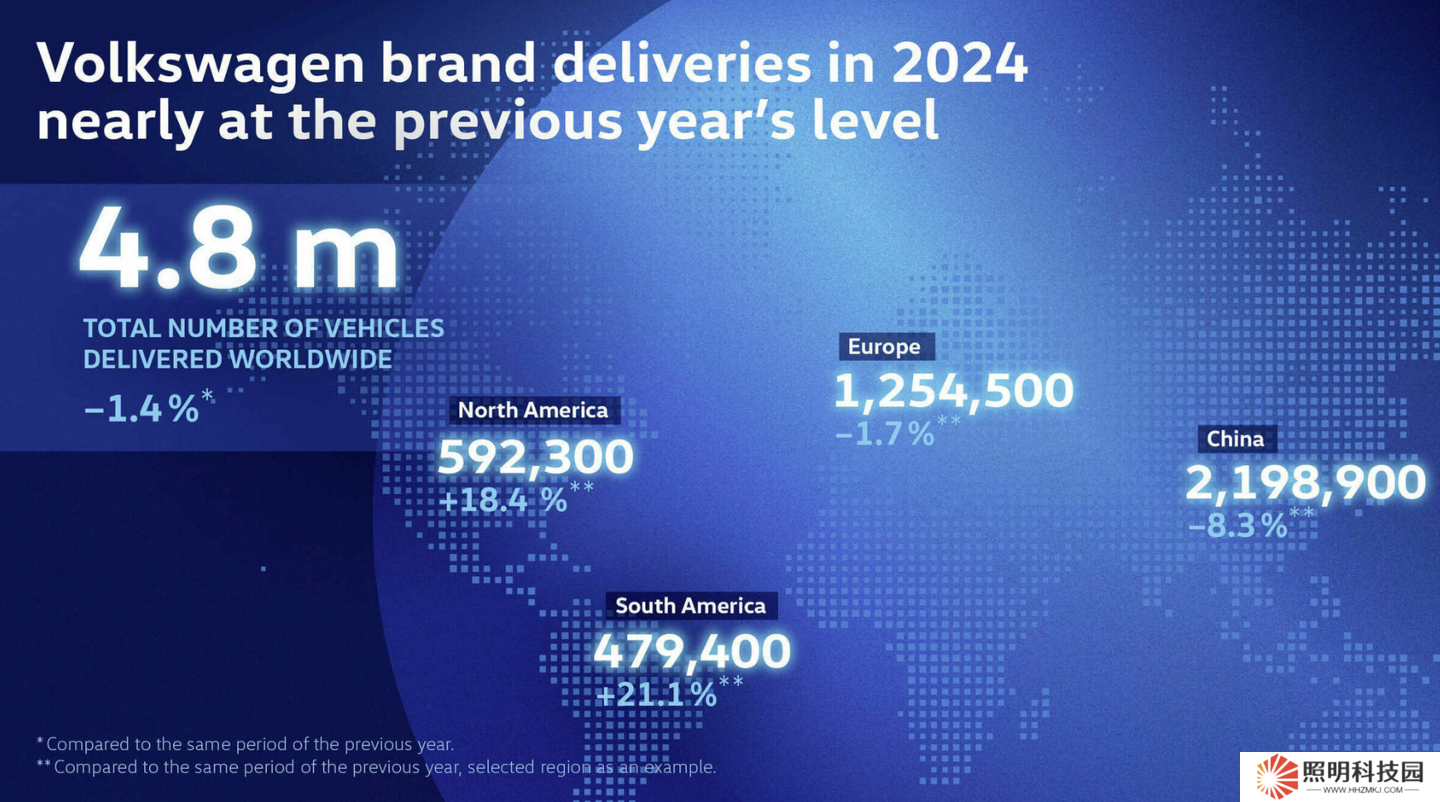 大眾汽車 2024 年在世界各地的交付數據: