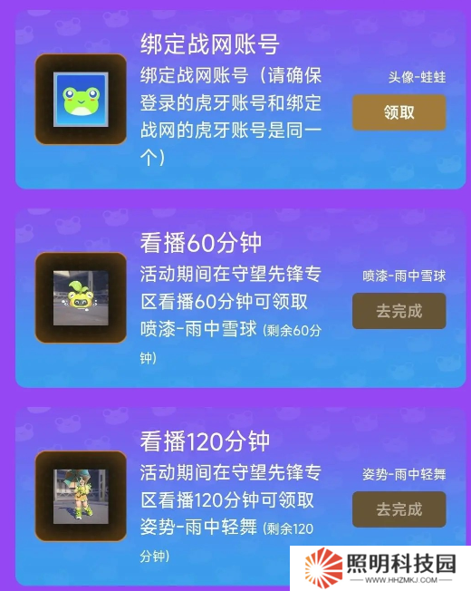 1、綁定賬號后,在指定主播的直播間觀看一段時間,就可以獲得守望先鋒的游戲獎勵!獎勵內容包括: